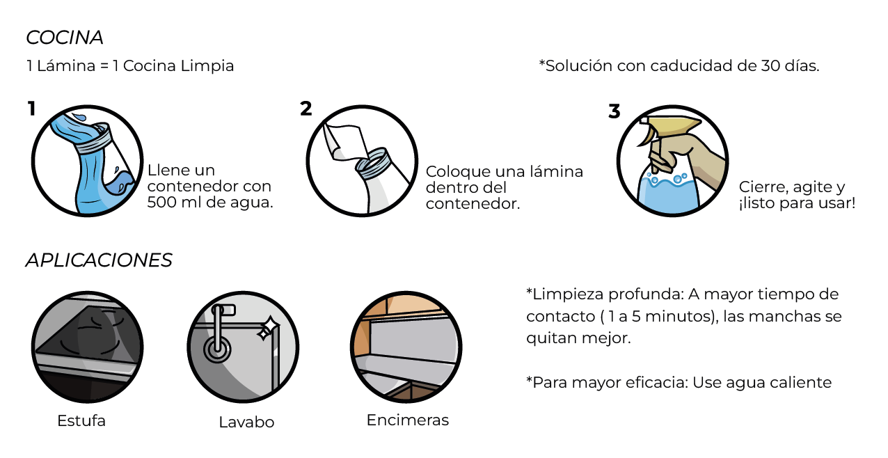 Limpieza diaria fácil y efectiva para superficies de cocina.